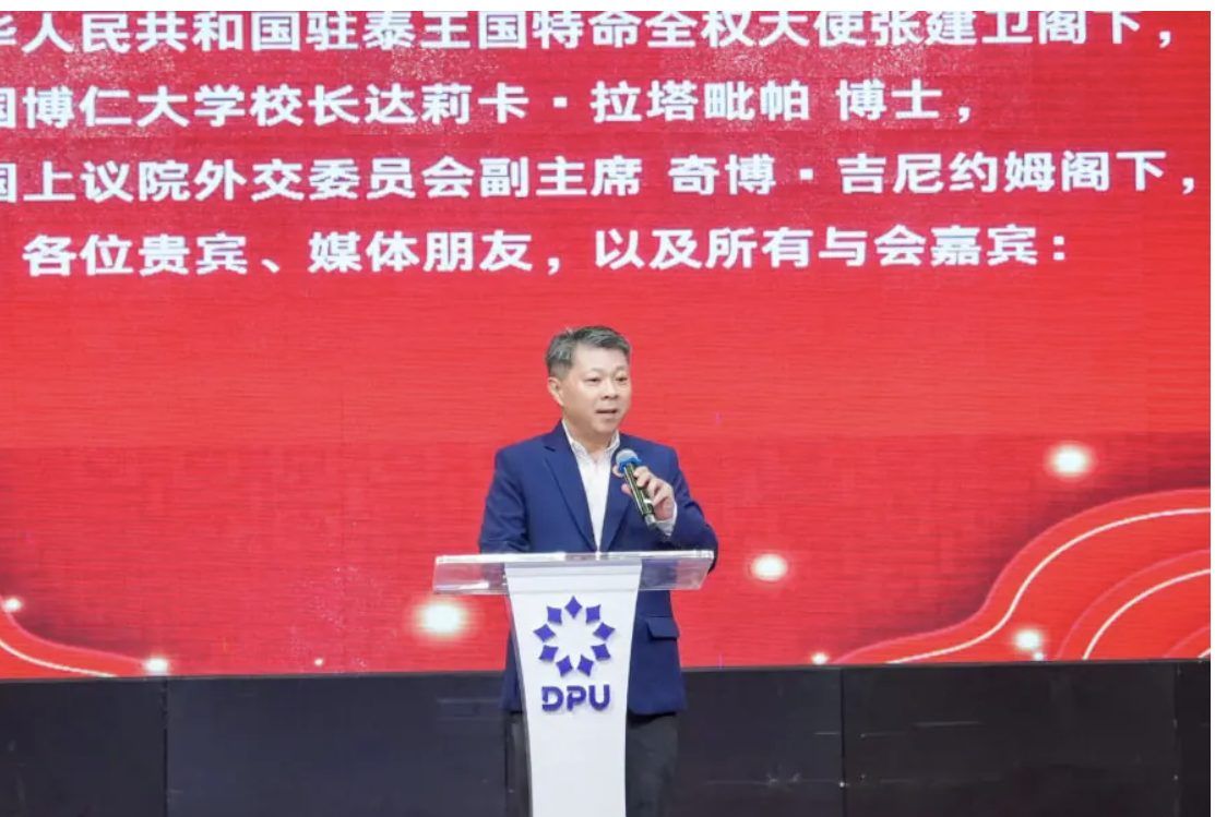 ดร.ดาริกา ลัทธพิพัฒน์ อธิการบดีมหาวิทยาลัยธุรกิจบัณฑิตย์ (DPU) กล่าวว่า ในวาระที่เฉลิมฉลองความสัมพันธ์ทางการทูตไทย-จีนครบ 50 ปี มีความหมายอย่างยิ่ง สะท้อนถึงมิตรภาพอันแน่นแฟ้นและมั่นคงระหว่างสองประเทศ ที่เติบโตบนพื้นฐานของความไว้วางใจ ความร่วมมือ และการแลกเปลี่ยนทางวัฒนธรรม การศึกษา และเศรษฐกิจอย่างต่อเนื่อง DPU ให้ความสำคัญกับการสร้างความร่วมมือทางการศึกษา ผ่านโครงการแลกเปลี่ยนนักศึกษาระหว่างทั้งสองประเทศ รวมถึงส่งเสริมการเรียนรู้ภาษาจีน และการทำงานร่วมกับสถาบันขงจื่อเส้นทางสายไหมทางทะเล เพื่อเปิดโลกทัศน์ให้เยาวชนไทยได้เข้าใจประเทศจีนในหลากหลายมิติ ไม่ว่าจะเป็นภาษา วัฒนธรรม เทคโนโลยี หรือเศรษฐกิจของโลกในยุคใหม่