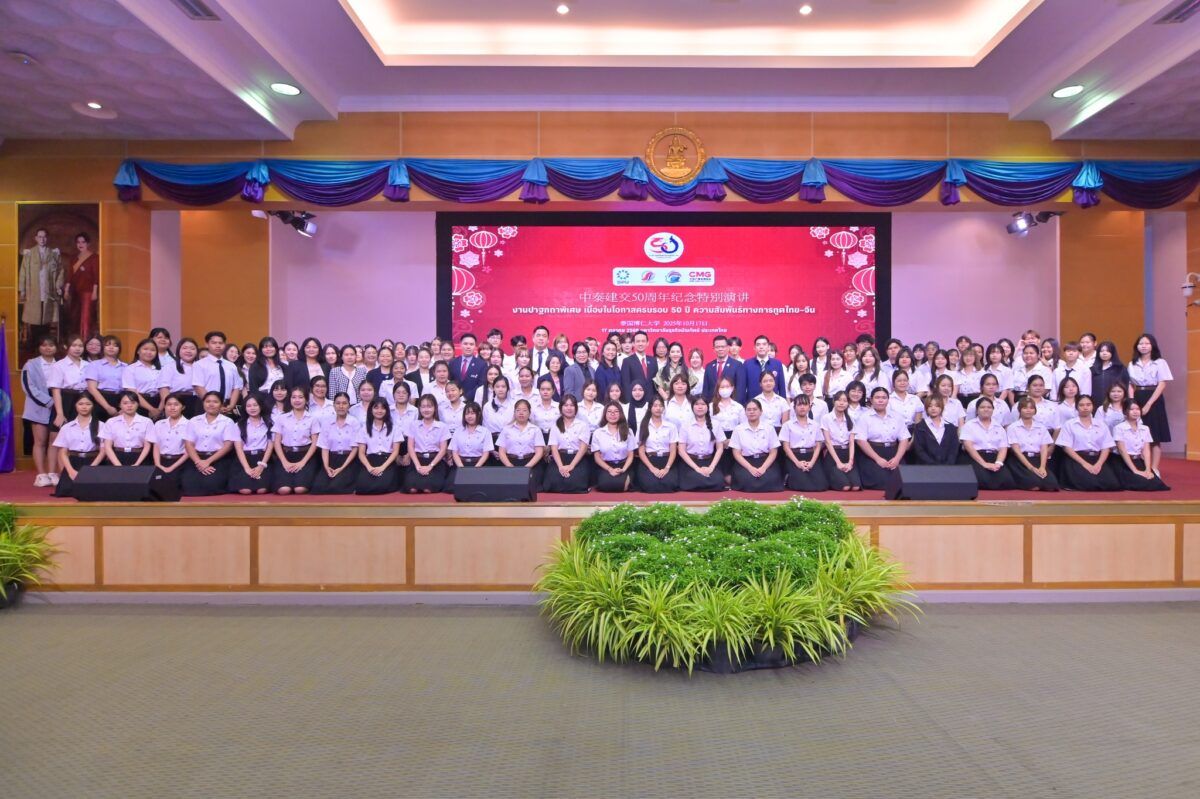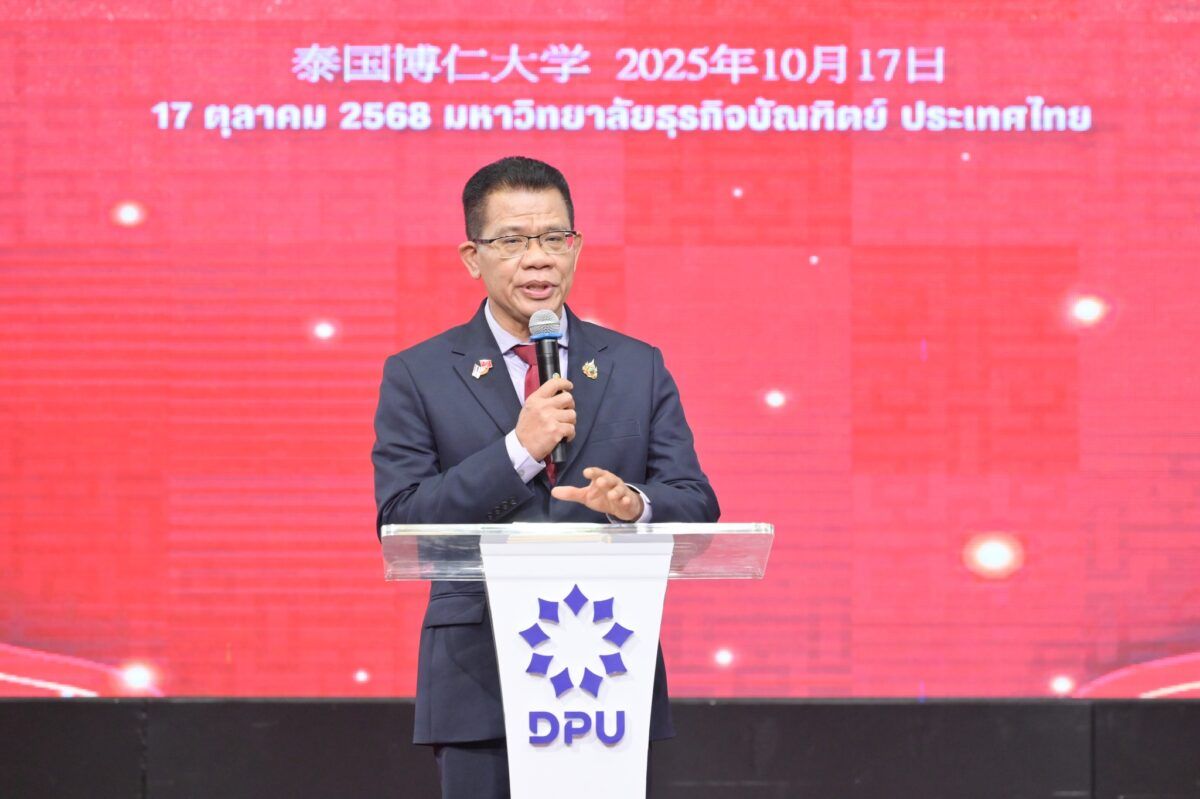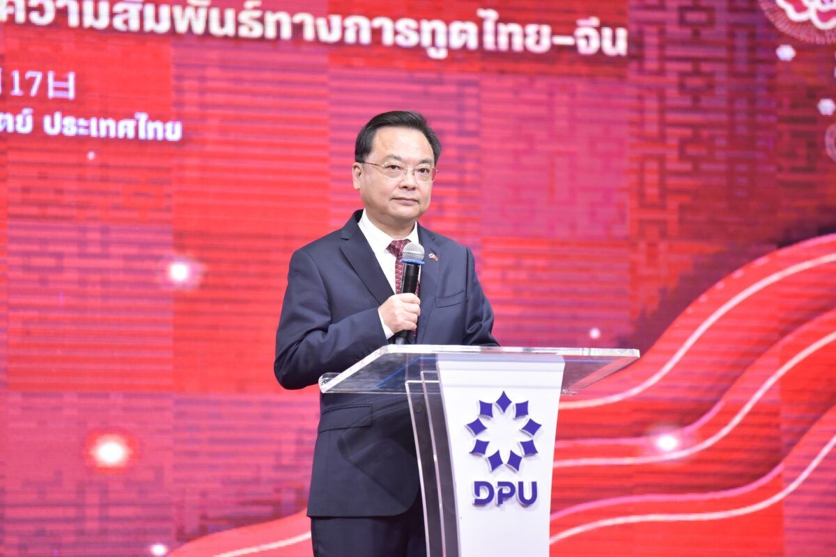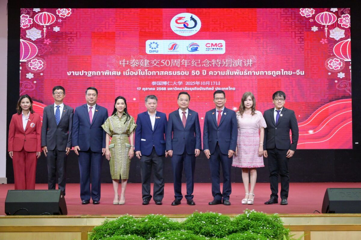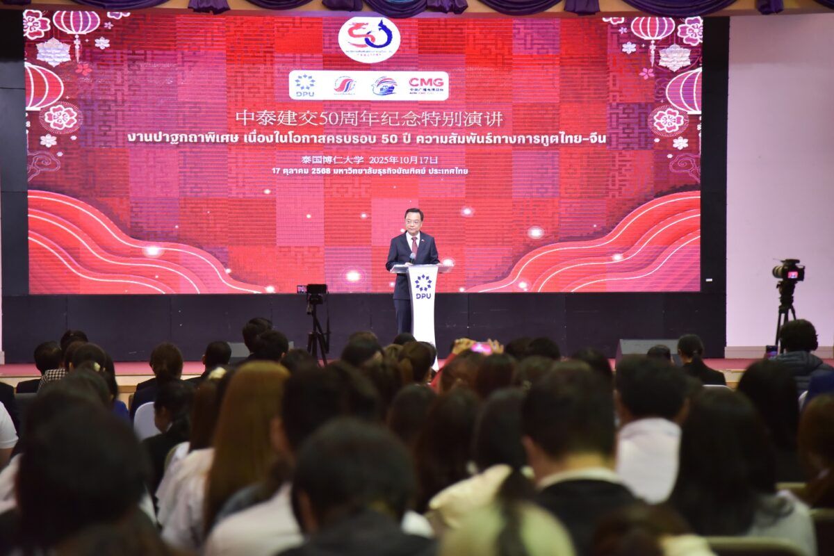 เมื่อวันที่ 17 ตุลาคม 2568 ที่ผ่านมา สมาคมผู้สื่อข่าวไทย–จีน ร่วมกับสถาบันสื่อและบริหารธุรกิจไทย–จีน มหาวิทยาลัยธุรกิจบัณฑิตย์ (DPU) และ China Media Group (CMG) ร่วมกันจัด งานปาฐกถาพิเศษ เนื่องในโอกาสครบรอบ 50 ปี ความสัมพันธ์ทางการทูตไทย–จีน หัวข้อ “ความสัมพันธ์ ไทย-จีน กับธรรมาภิบาลโลก” โดยได้รับเกียรติจาก นายจาง เจี้ยนเว่ย เอกอัครราชทูตสาธารณรัฐประชาชนจีนประจำประเทศไทย เป็นองค์ปาฐกในครั้งนี้ และนายชิบ จิตนิยม รองประธานคณะกรรมาธิการการต่างประเทศ วุฒิสภา กล่าวปาฐกถา หัวข้อ “ธรรมาภิบาลโลก อนาคตแห่งสันติภาพร่วมกัน” โดยมี ดร.กำพล มหานุกูล นายกสมาคมผู้สื่อข่าวไทย-จีน และ ดร.ดาริกา ลัทธพิพัฒน์ อธิการบดีมหาวิทยาลัยธุรกิจบัณฑิตย์ (DPU) ร่วมต้อนรับ พร้อมด้วยผู้บริหาร คณาจารย์ สื่อมวลชน นักศึกษาของ DPU และผู้เรียนหลักสูตรผู้บริหารธุรกิจไทย–จีน (บทจ.) ร่วมรับฟัง ณ ห้องประชุมปรีดี พนมยงค์ DPU